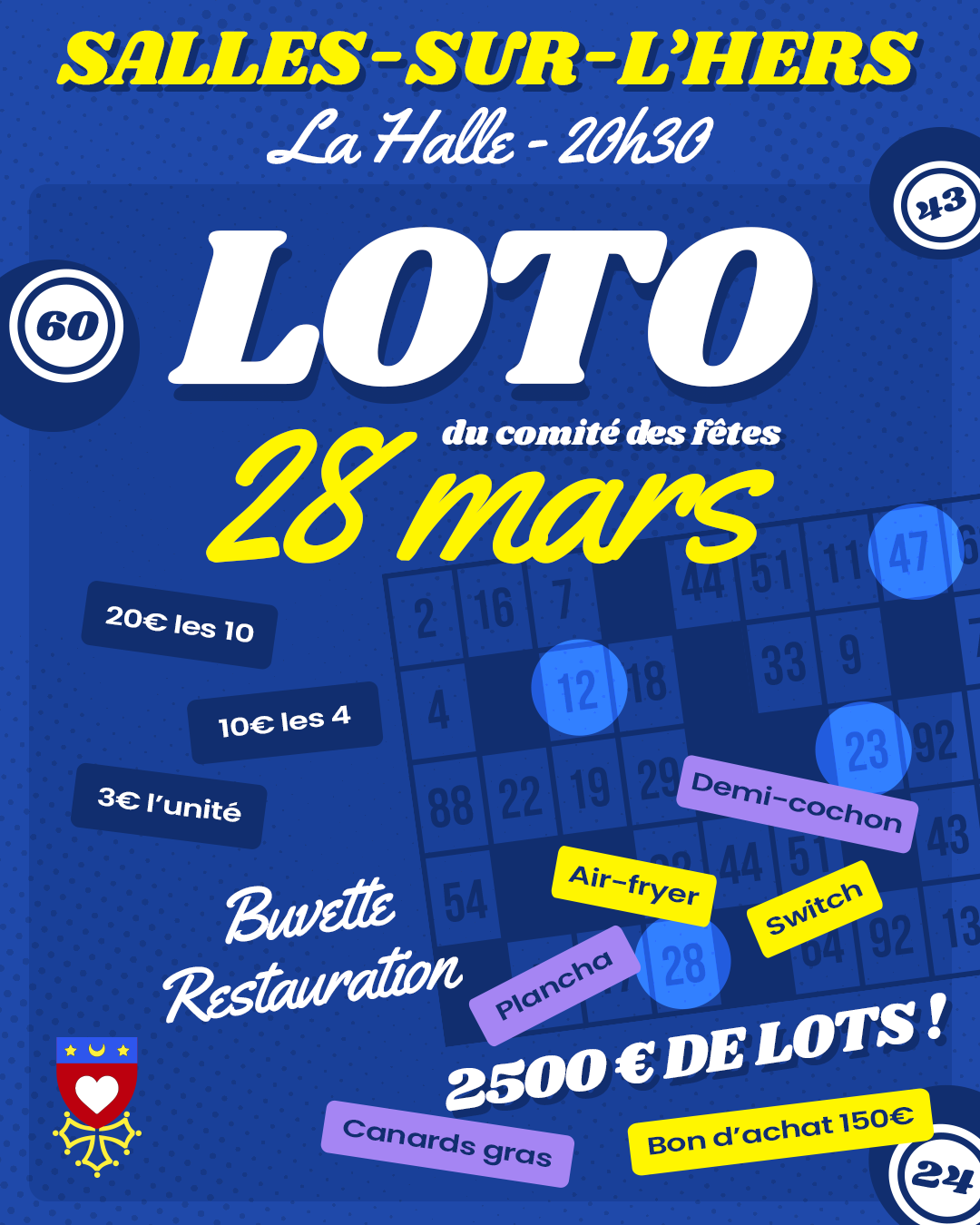 GRAND LOTO DU COMITÉ DES FÊTES Salles-sur-l’Hers – La Halle Samedi 28 mars Début à 20h30 Venez passer une soirée conviviale et tenter votre chance lors de notre grand loto […]